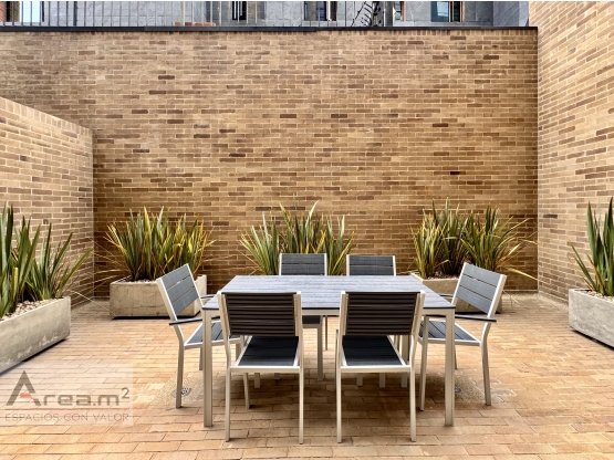 Área m² Espacios con Valor, ofrece para arriendo  ESPECTACULAR   APARTAMENTO DUPLEX  CON TERRAZA PRIVADA,  TOTALMENTE AMOBLADO PARA ESTRENAR ubicado en el corazón del parque de la calle 93. EL VALOR DEL ARRIENDO INCLUYE SERVICIOS (AGUA, LUZ, INTERNET Y ENERGÍA) Y EL VALOR DE LA ADMINISTRACIÓN. Apartamento de 60m² más  50 m² de terraza.  El apartamento tiene techo alto y ventanales de techo a piso y tiene balcón. La zona social es abierta hacia la cocina con sofá cama y mesa de comedor. Tiene una amplia alcoba y 2 baños. La cocina abierta es muy moderna con todos los electrodomésticos y equipos de cocina. El  mesón es de Quartzone.  Zona de lavandería independiente con lavadora secadora marca Whirlpool. La alcoba viene con cama doble, lencería, dos mesas de noche y televisión de 50 pulgadas.  El apto. Tiene un parqueadero privado.  El edificio tiene en la terraza dos áreas para coworking, BBQ y zona de lavandería adicional. Perfecto para ejecutivos y empresas.   Nuestra página web es http://aream2.com.co/
